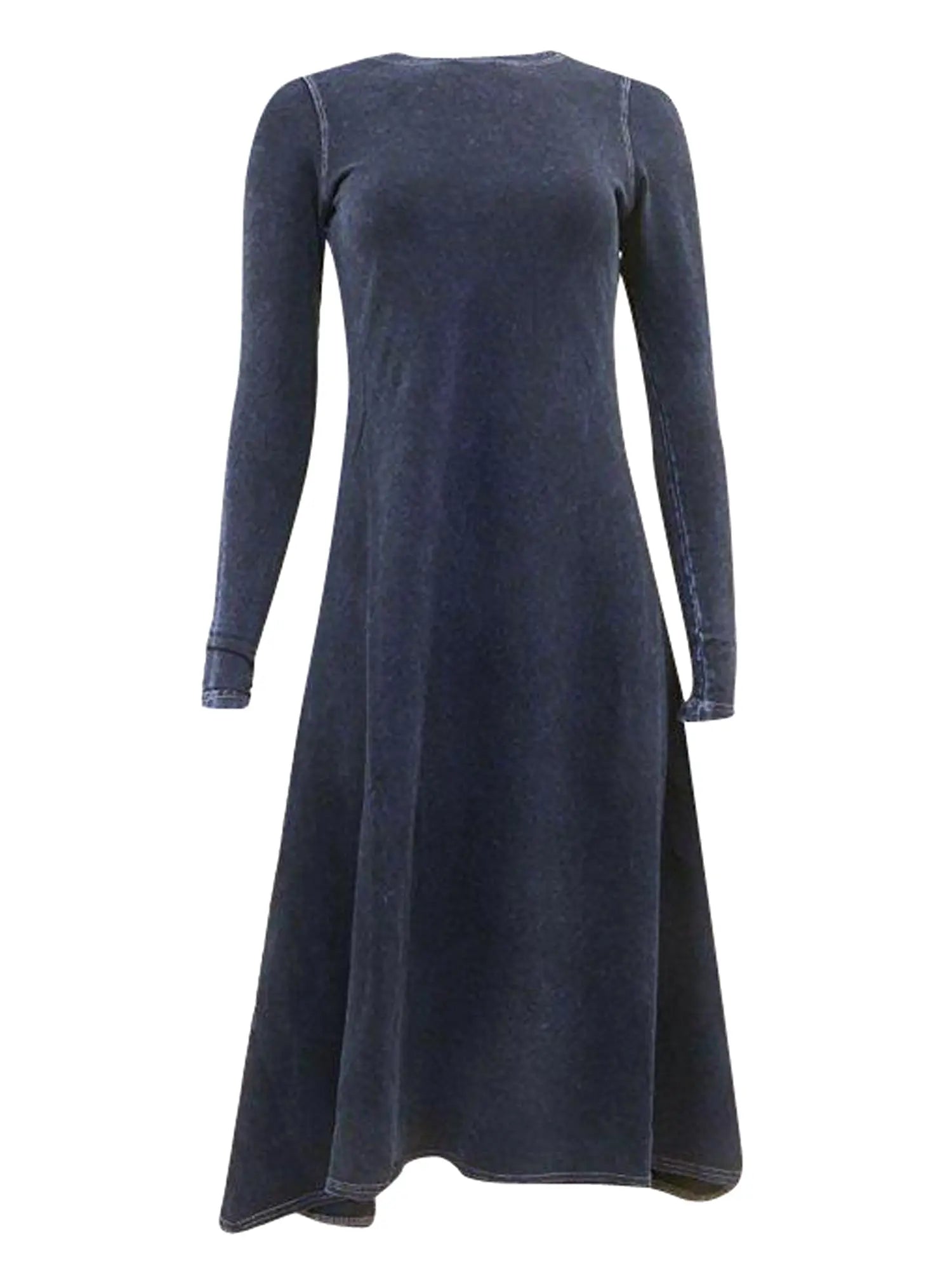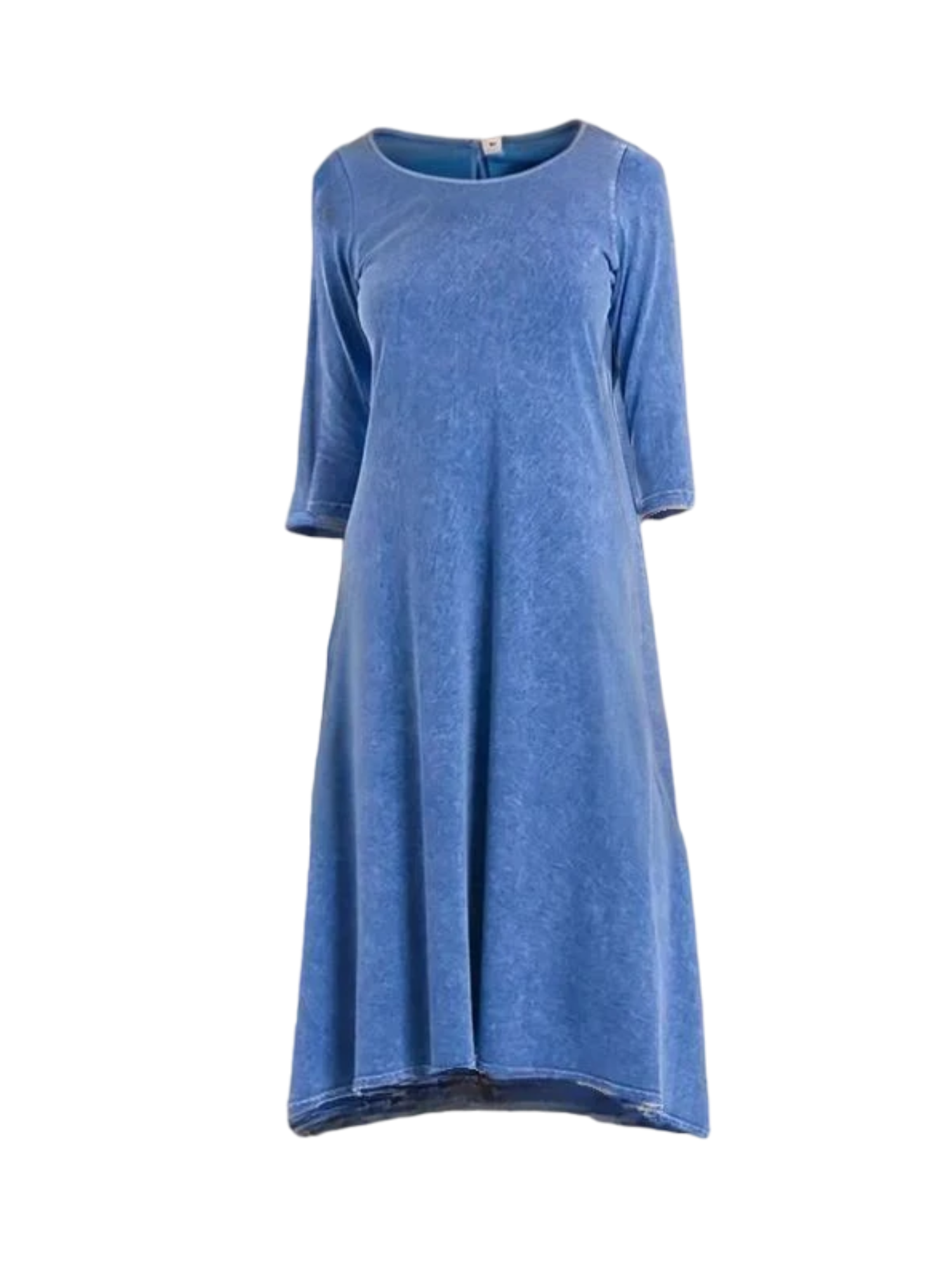 • HARD TAIL FOREVER - Stretch dress with handkerchief hem, long sleeves, and a round neck