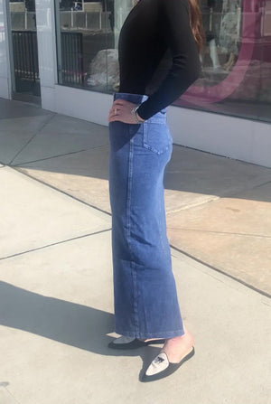 This long and lean Hardtail Maxi isn't just another skirt; it's a comfortable confidence booster wrapped in the beauty of a lived-in denim wash. But heads up, this beauty runs fitted, so if you prefer a looser fit, consider sizing up for extra room to move.
