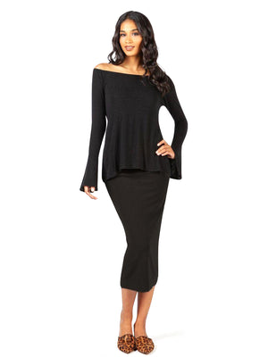 Comfy stretchy material, straight midi-skirt. 96% Siro Micro Modal / 5% Spandex. Hand or Machine Wash. Use Cold Water Only. Use Mild Detergent, No Bleach. Tumble Dry Low. Made in the USA.