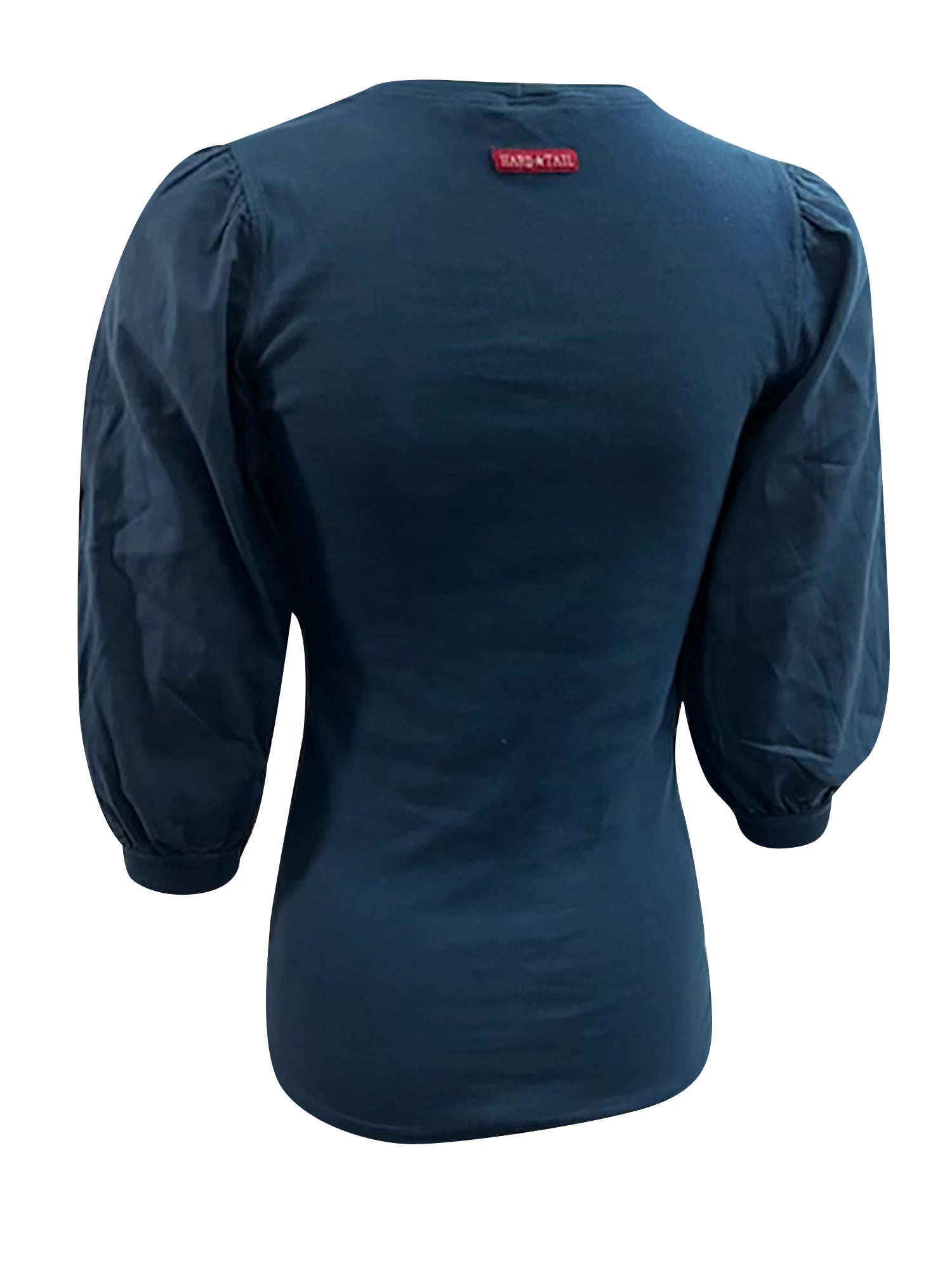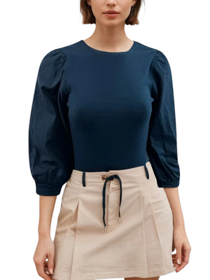 Forget stiff blouses and predictable tees – meet your new comfort & cool bestie: Hard Tail's cotton crewneck bubble sleeve top. Imagine this: