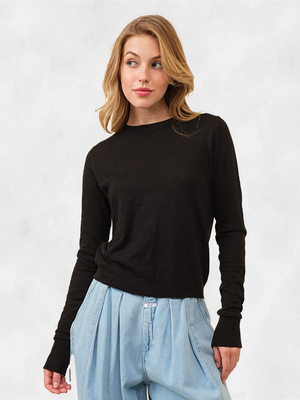 Description - Elevate your everyday look with the Hersy sweater. This timeless black crewneck, crafted from luxuriously soft knit, offers effortless comfort and chic style.