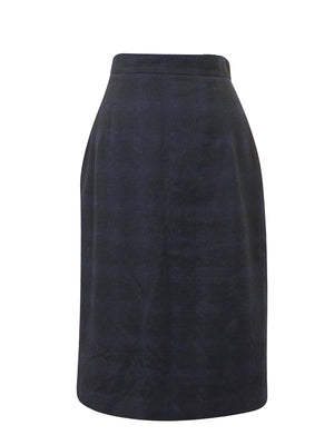 Black and Dark Ink Blue a-line skirt, fully lined. Subtle plaid pattern.
