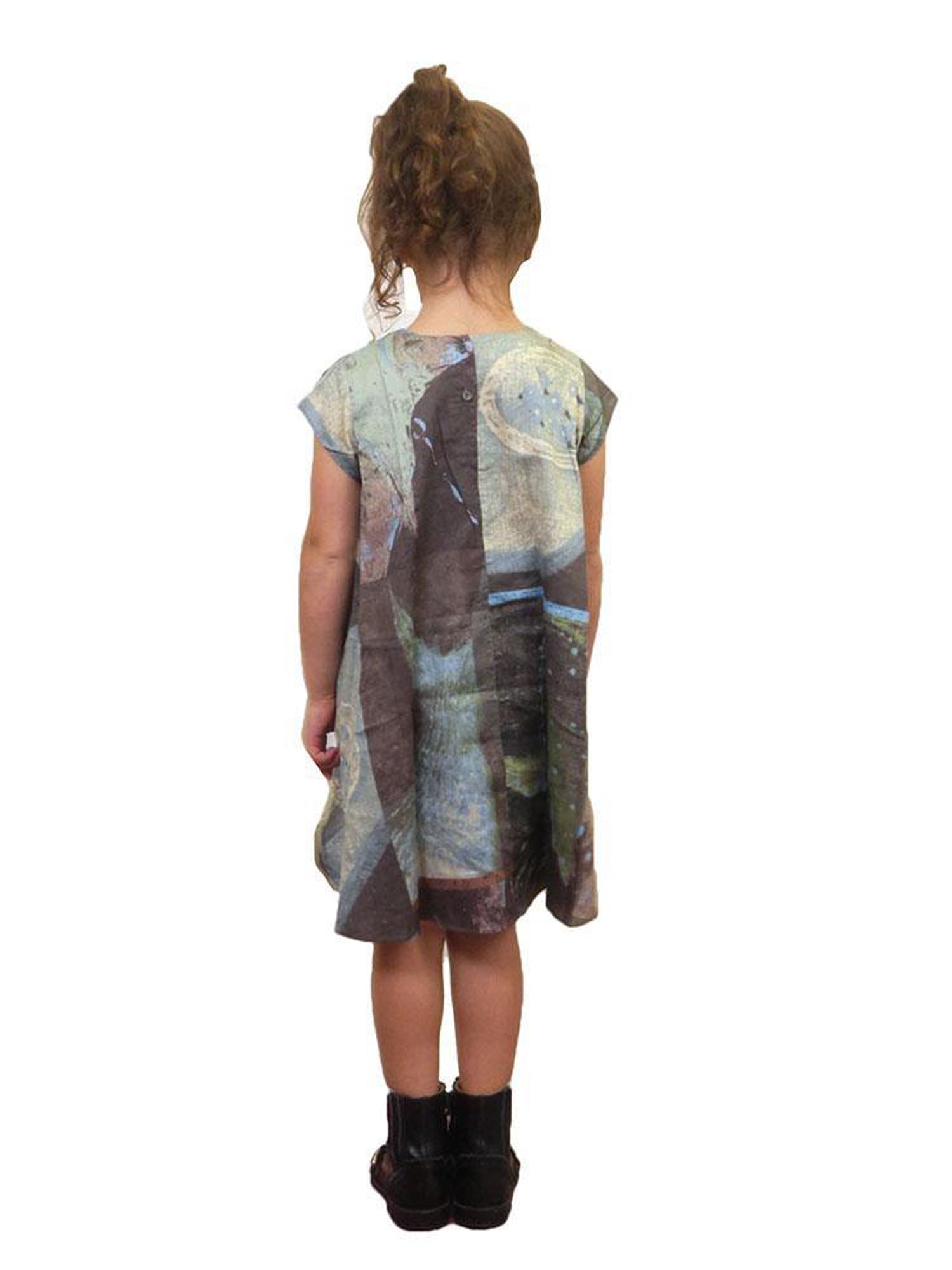 Multicolored print cap sleeve wide cut dress