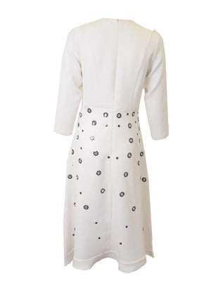 Crepe dress with floral rhinestones & sequin design and three quarter sleeves