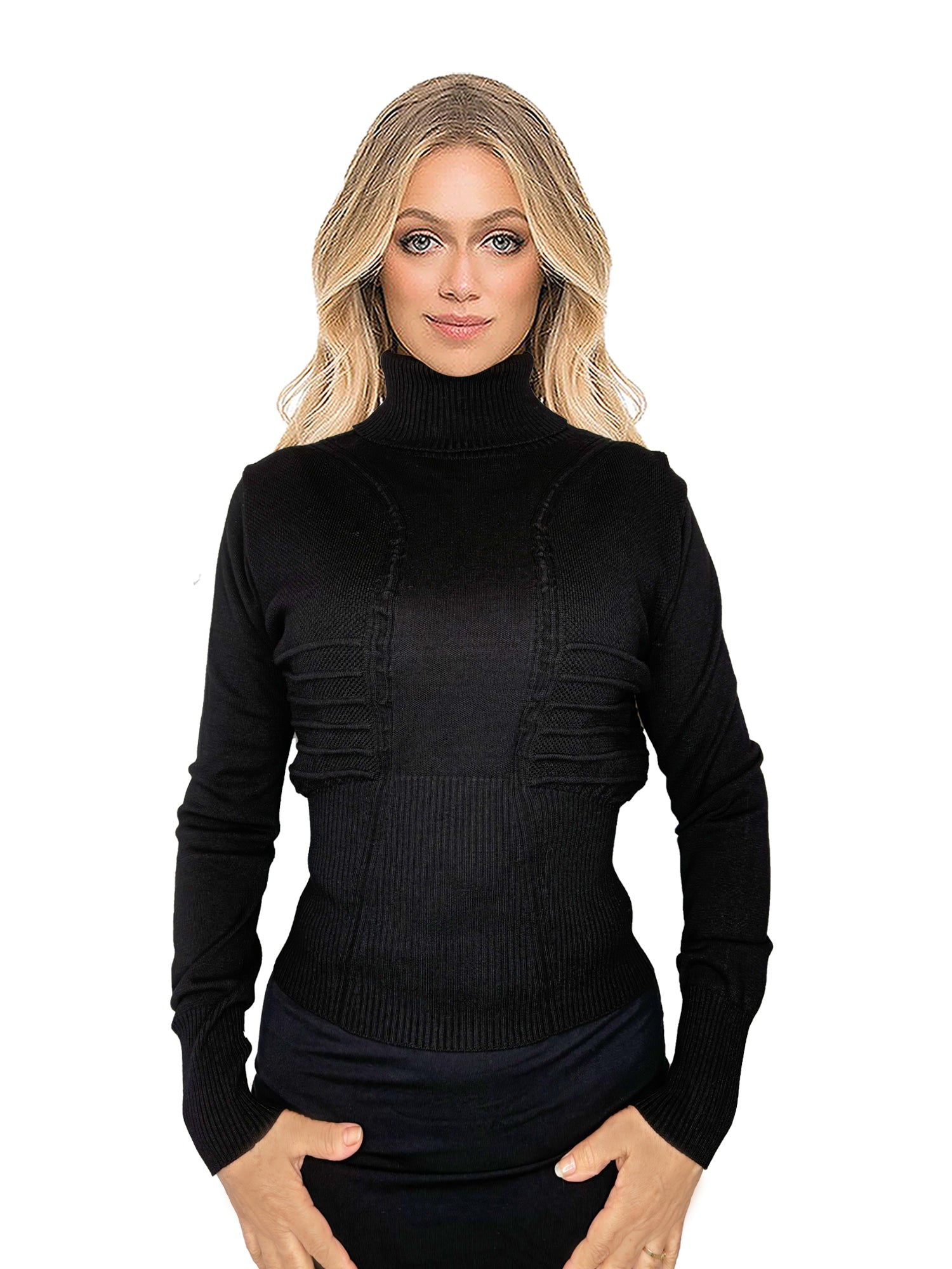 Embrace timeless elegance with the Kathie K Knit Neck Turtle Top from White Icy. Luxuriously soft knit fabric ensures all-day comfort, while the sophisticated turtle neckline adds a touch of refinement. Perfect for layering or standing alone, this versatile top effortlessly transitions from desk to dinner. Discover a wardrobe staple that combines style with comfort, tailored for the modern woman's wardrobe.