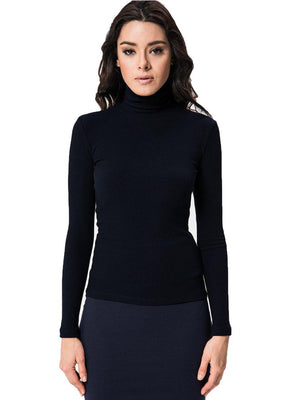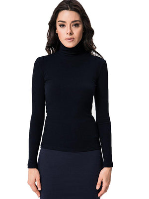 Fitted ribbed long sleeve turtleneck.