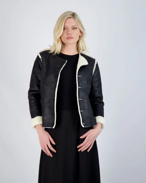 •LOOK: Everyone will be envious of your style with this faux-shearling jacket, fashioned with two slit pockets, button front. Big surprise its reversible looks so cute with the sherpa showing.