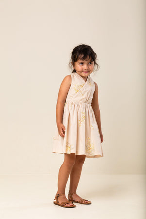 Summer dress in a light quality. The dress has a simple fit with elastic seams on the back and a tie at the neck.