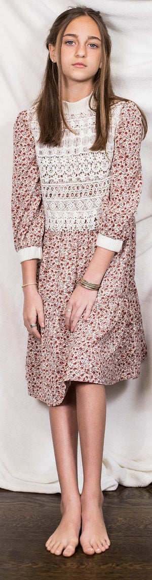 Floral print dress with knit overlay