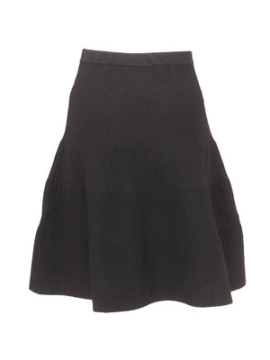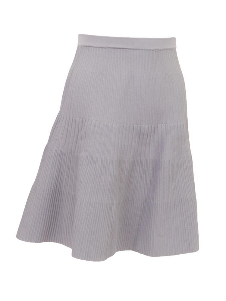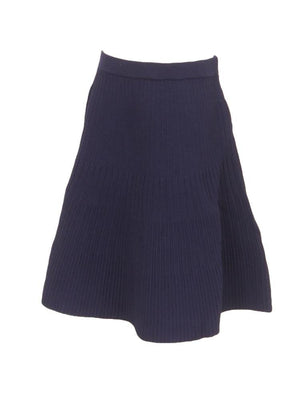 Miss Meme junior ribbed a-line knit skirt. Flat waistband, knee-length.