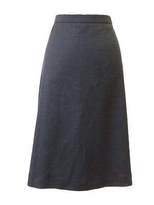 Wool fabric a-line skirt with zippered waist, hits below the knee.