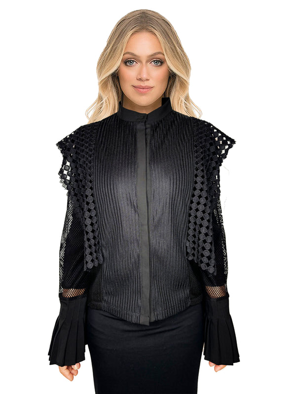 Indulge in elegance with our Nancy Guipure Lace Button Front Shirt. Crafted with intricate lace detailing and a sophisticated button-up front, it exudes timeless charm. The soft, lightweight fabric ensures luxurious comfort, while the flattering silhouette complements every figure. Perfect for adding a touch of refinement to any ensemble, day or night. Embrace sophistication with this wardrobe essential.