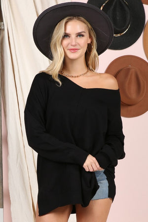 V- NECK LOOSE FIT TUNIC LENGTH SOFT TOUCH SWEATER TOP