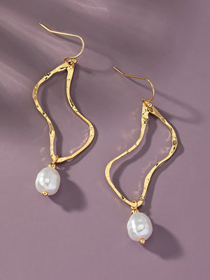 Gold metal and pearl hammered open loop design earrings. Lightweight and perfect with your favorite t-shirt or pretty dress.