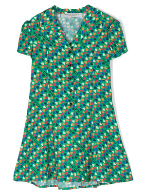 •LOOK: Cool x2. This dress by Philosophy is ideal for the hottest days of the year. The fabric has a breathable, rayon feel. V-neck with buttons down to the waist and short sleeves. The hi-low hem finishes off a swingy skirt. Sandals or sneakers with funky sunglasses and she is ready for the heat. She won’t only look cool, but she will actually be cool. Cool x2.