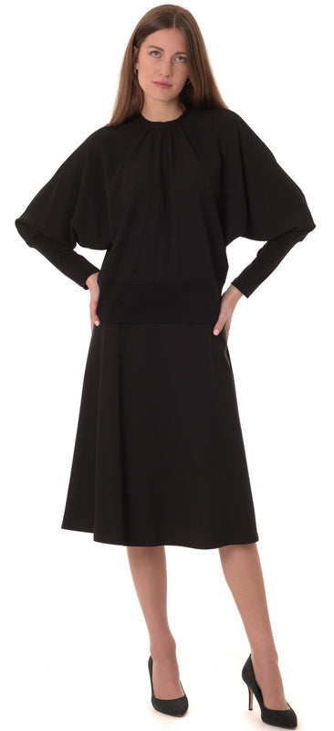 – Sold OutThe dressy dolman shirt epitomizes effortless elegance with its relaxed, loose-fitting silhouette and wide, draping sleeves that exude a touch of sophistication. Crafted from luxurious fabrics , it gracefully flows and drapes, flattering various body shapes. The longer length adds versatility, allowing it to be worn tucked or untucked for both formal events and chic casual affairs. Delicate look or beading adorn some designs, further elevating its allure. A staple for any fashion-forward wardrobe, this shirt pairs exquisitely with tailored pencil skirts, or flowy maxis, making a statement with style and comfort combined.