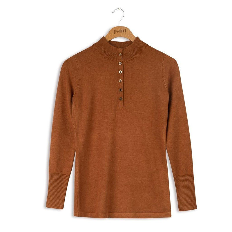 – Sold OutKeep it simple and comfy. The ultimate mock neck knit henley. Point wanted to create a basic comfy wardrobe staple with a ton of versatility., Their basic mock neck features stretchy, washable fabric you know and love. Wear them layered or just as is, you'll live in these elevated basics. They create endless opportunities to mix and match. They wash like a dream and wear so effortlessly.