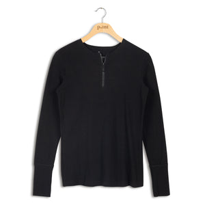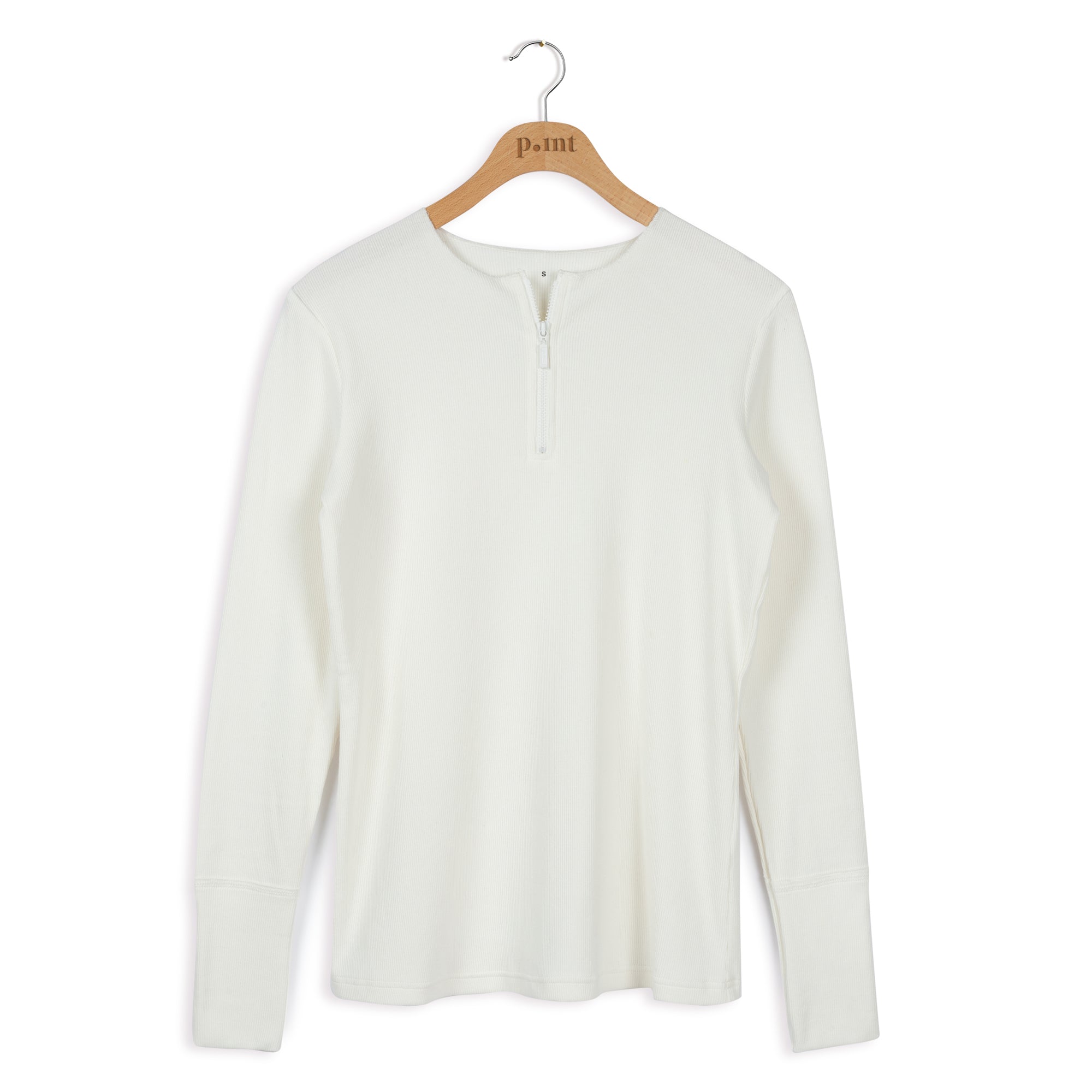 This top is perfect for your Sunday wardrobe. Features long sleeves a crewneck line and a half zip closure in the front.
