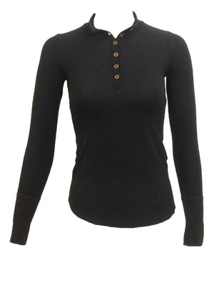 Mock turtleneck long sleeved T-shirt Top with henley style neckline. This fashion essential is a buttery soft stretch cotton with a lightweight modal feel. High-neckline , muted color palette, a great match to the Point A-line Skirts.