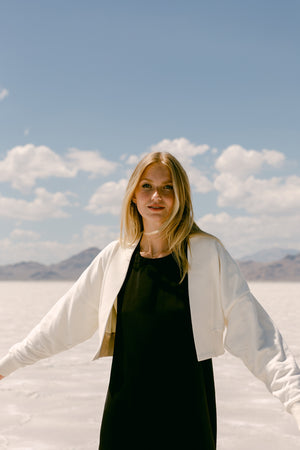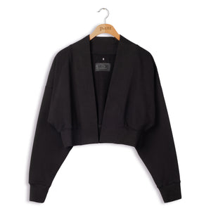 •LOOK: Sometimes you just need something to pull a look together. This is that piece. An open front, jersey knit jacket over a skirt and blouse or a cool tee with denim is the perfect finishing touch. The cropped length will not leave you short on style.