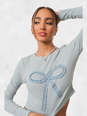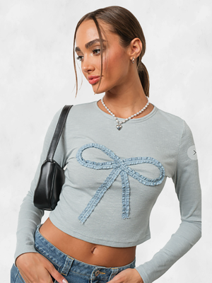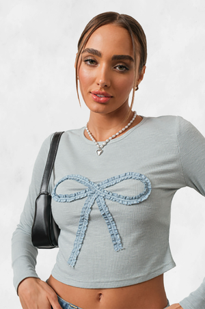 Description - Cozy meets cute with our Beige Bow Ribbed Knit Top. Featuring a delicate bow detail and flattering ribbed knit, this top adds a touch of sweetness to any look.