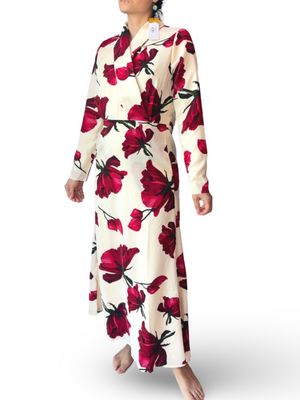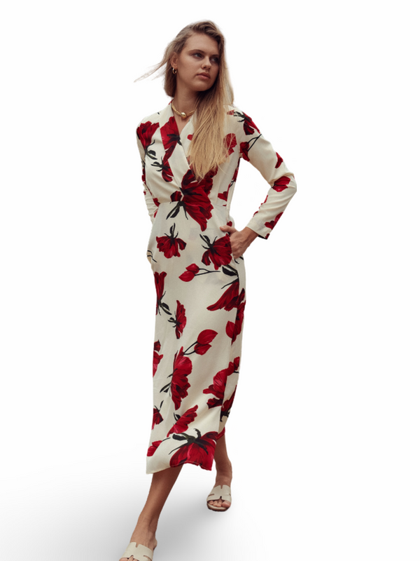 Description – The Profile Rose Elegance dress exudes timeless sophistication with its graceful cross neckline, long sleeves, and delicate rose print. Designed with an A-line skirt and an invisible zip closure, it offers a flawless fit and effortless elegance. Perfect for special occasions, this refined silhouette enhances movement and style, making it a must-have for any elegant wardrobe.