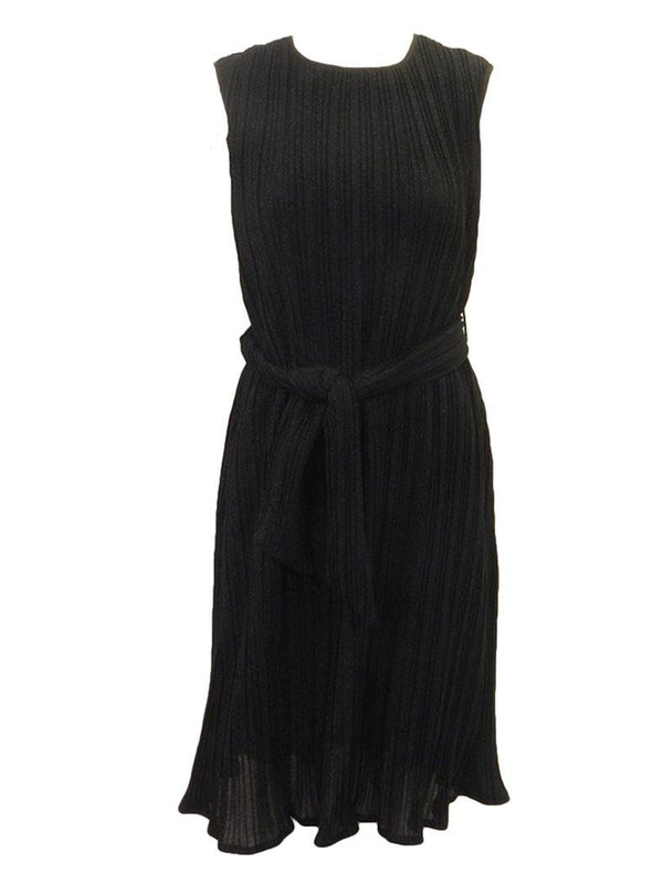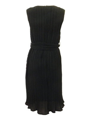 Black glitter fabric a-line mini pleated jumper with belt