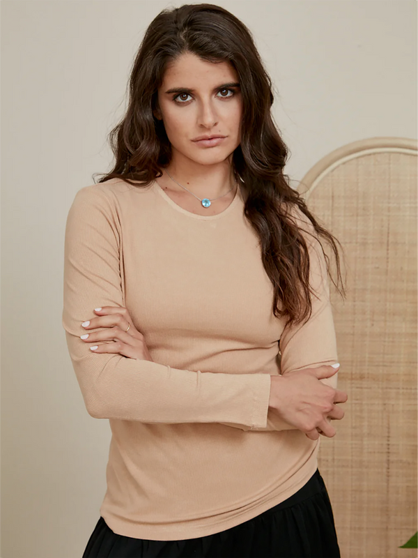 – Sold Out•LOOK: The long sleeve Charlo rayon tee from Shift is a classic style in a trendy ribbed texture. Hip length. Rounded neckline. Perfect for transitioning from winter into spring. It has a heavier weight than a traditional tee but with a more refined look. Wear to work with skirts, pants or to casual gatherings with denim. Thin enough to be comfortable under fitted jackets. Layer under cardigans. Try wearing it with the matching Charlo skirt. This is an essential piece you will enjoy in every color.