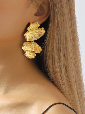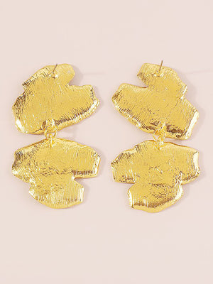 These geometric textured gold metal drop earrings are a real statement maker for any outfit . Top portion has post with the bottom section on a link for movement.