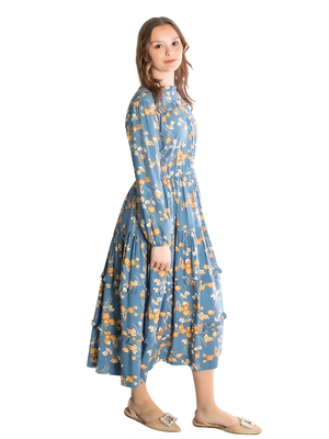 Look: Just in at Pink Orchid Fashion! High The Collection is a leading fashion designer and their clothes make a statement. Continuing with the ever so popular tiered look, this dress is beautifully appointed with a slight puffed shoulder and sleeve, has a small ruffle detail across the front and at the collar. This dress is effortless and flowy. Great with little booties or with your favorite mule. Back zipper, maxi length.