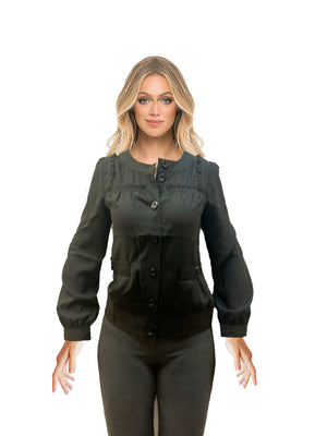 Embrace modern style with our Vertigo Long Sleeve Front Button Pocket Top. Featuring sleek front buttons and convenient pockets, this top blends functionality with fashion. Made from premium, breathable fabric, it offers all-day comfort and a polished look. Perfect for versatile styling, it transitions seamlessly from office to casual outings, making it a must-have wardrobe staple.