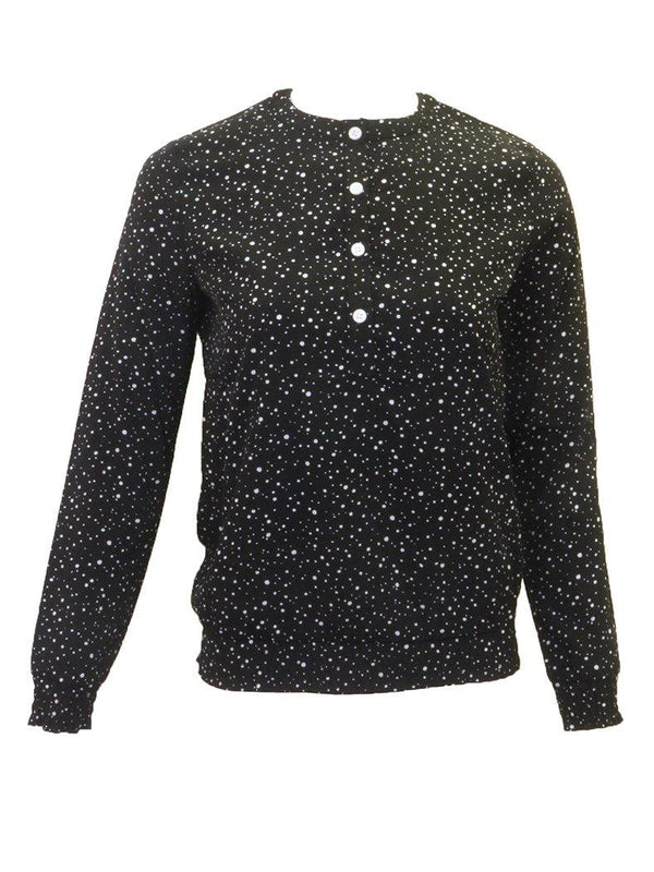 Solid or Polka Dot blouse with front buttons. Matching skirt available.