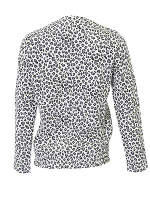 Crewneck leopard print smocked top with back zipper
