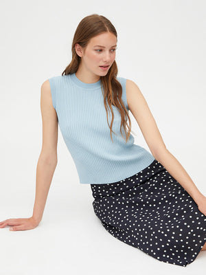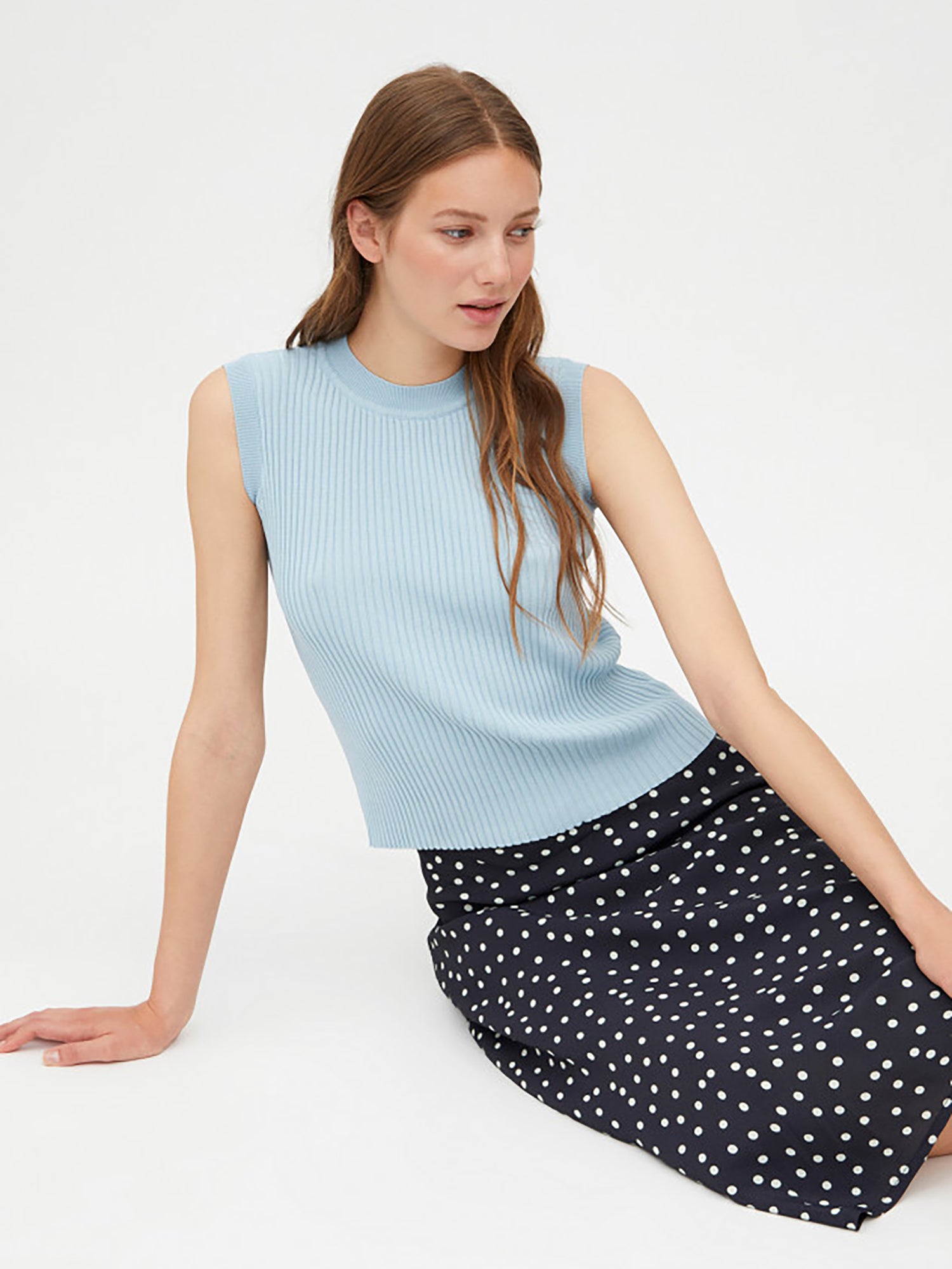 •LOOK: Here is a great layering piece from Wild Pony. New this season is a tank style top in a highly texturized, ribbed knit. It has a classic rounded neckline. The fabric is very forgiving. We recommend ordering your usual size. This tank offers complete coverage of undergarments. Length falls just to the hip. Recommend wearing with a higher waisted bottom. Very soft and smooth to the touch. This is a high end essential piece that would make a nice addition to any wardrobe.